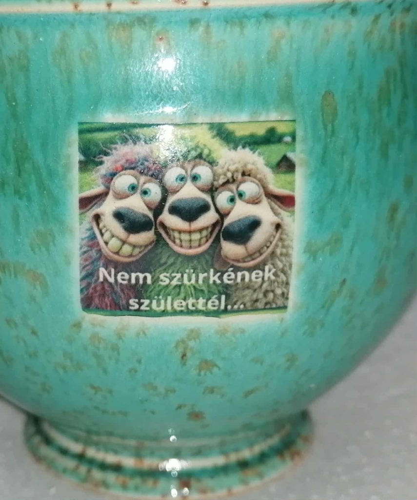 Egyedi matricás csésze.