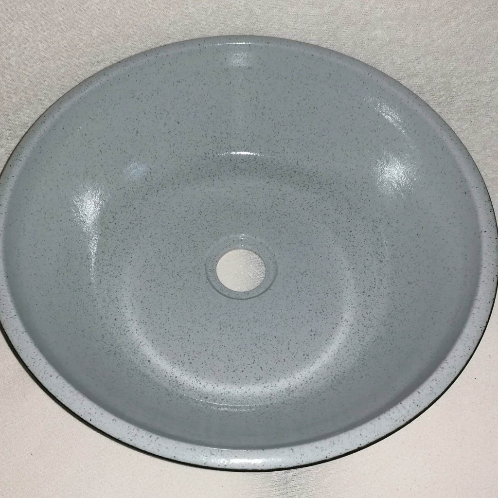 Egyedi kerámia mosdótál.Belül selyemfényű szürke ,fekete pöttyökkel,kivül matt fekete színű.