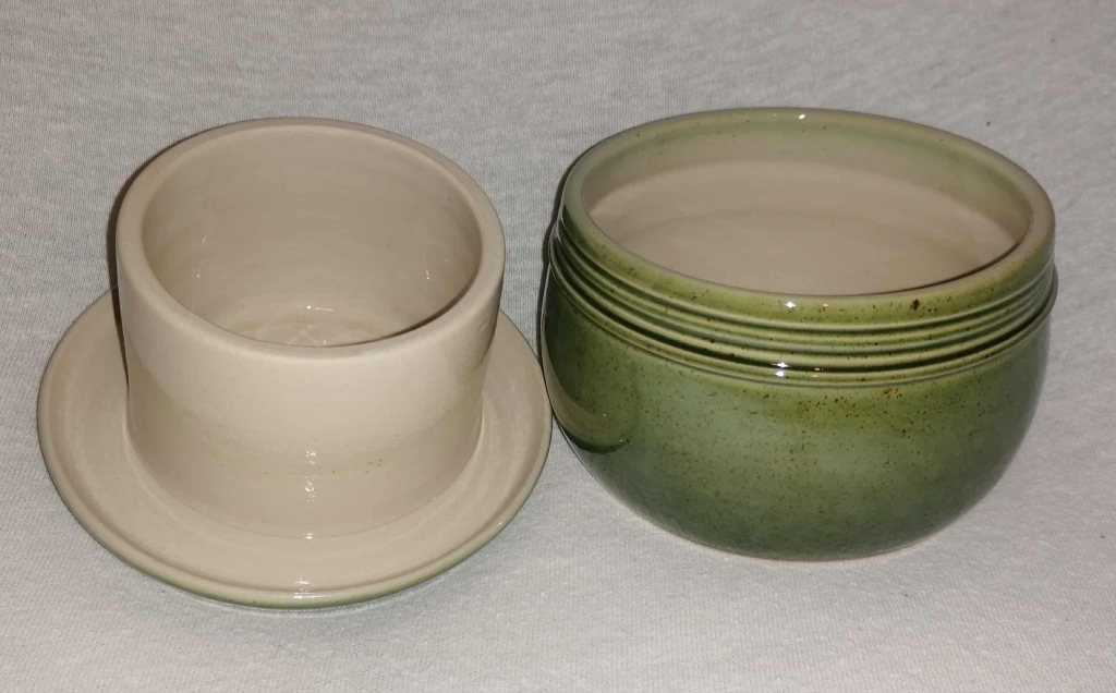 Vizes vajtartó.A vajat nem kell a hütőben tárolnia többé ,ha a kerámia vizes vajtartót használja.Ha a tál aljába vizet önt és a tetejét ráhelyezi akkor az szépen légmentesen lezár,ezáltal nem avasodik meg a benne lévő vaj ,bármennyi ideig megőrzi frisseségét és mindvégig jól kenhető marad.Ezentúl nem kell feleslegesen a hűtőben fagyasztani kőkeményre a vajat.